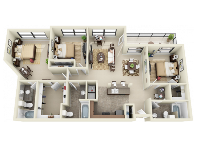 Modelo de apartamento: 3X3 Flat3 Dormitorios, 3 Baños, 1577 sq ftNo Disponible![]()