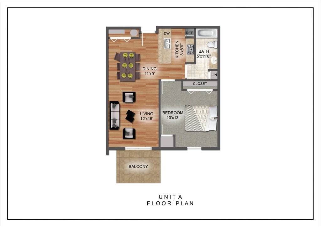 Modelo de apartamento: One Bedroom Style ALlame para Precios1 Dormitorio, 1 Baño, 728 sq ftNo Disponible![]()