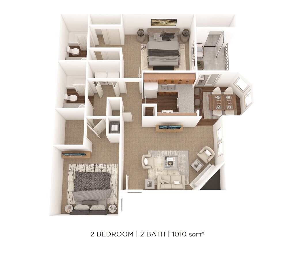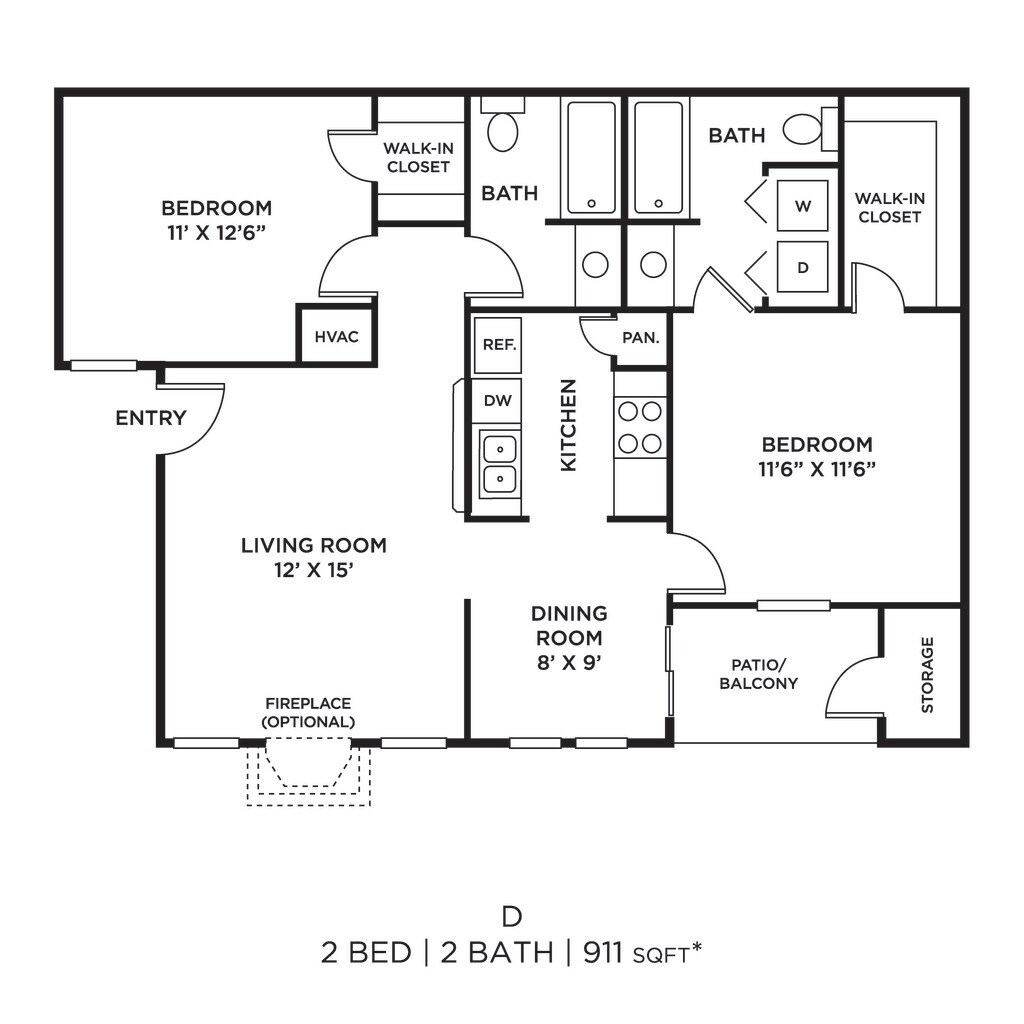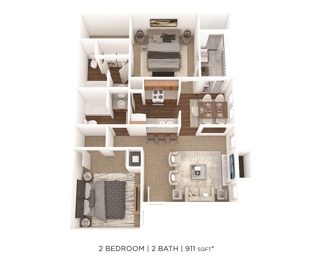 Modelo de apartamento: Two Bedroom 2 Bath-911 sqftDesde $1,5052 Dormitorios, 2 Baños, 911 sq ftDisponible November 21, 2025![]()