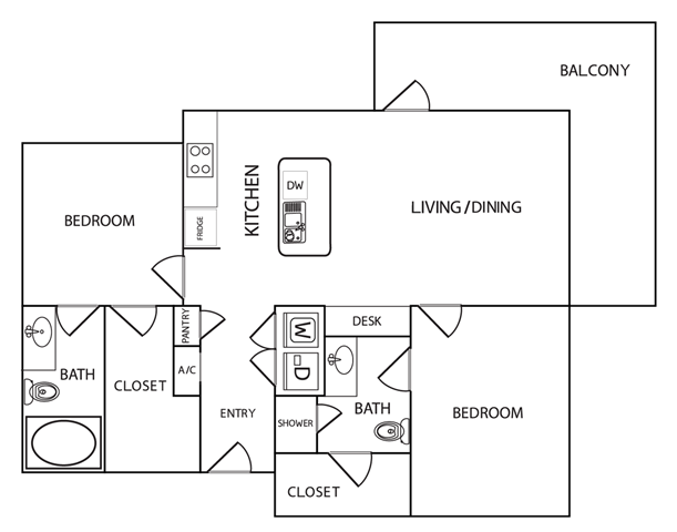 Modelo de apartamento: Athens1 Dormitorio, 1 Baño, 705 sq ftDisponible AhoraPlanosFotos![]()