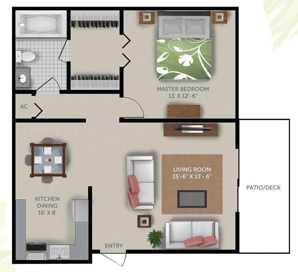 Modelo de apartamento: The Laurel1 Dormitorio, 1 Baño, 788 sq ftNo Disponible![]()