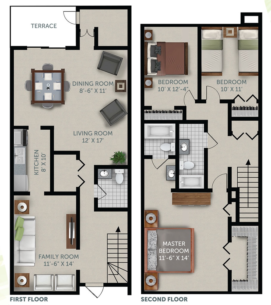 2 Dormitorios, 2.5 Baños, 1280 pies²El más grandeEsta opción tiene las unidades más grandes para este modeloGalería del Modelo