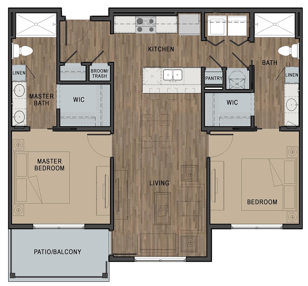 2 Dormitorios, 2 Baños, 1050 pies²El más grandeEsta opción tiene las unidades más grandes para este modeloGalería del Modelo