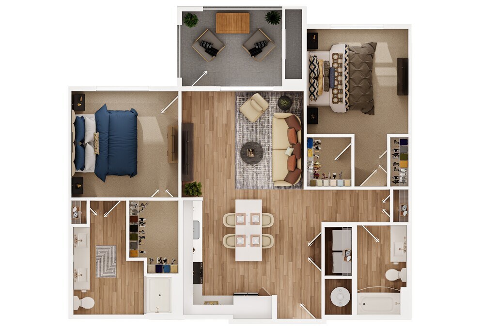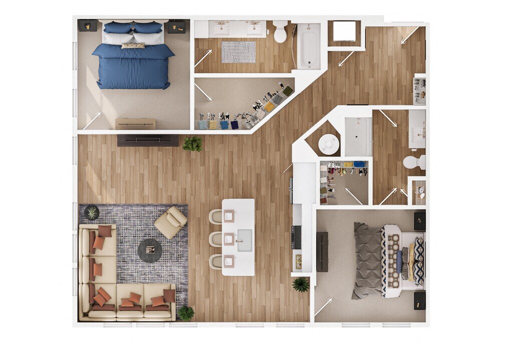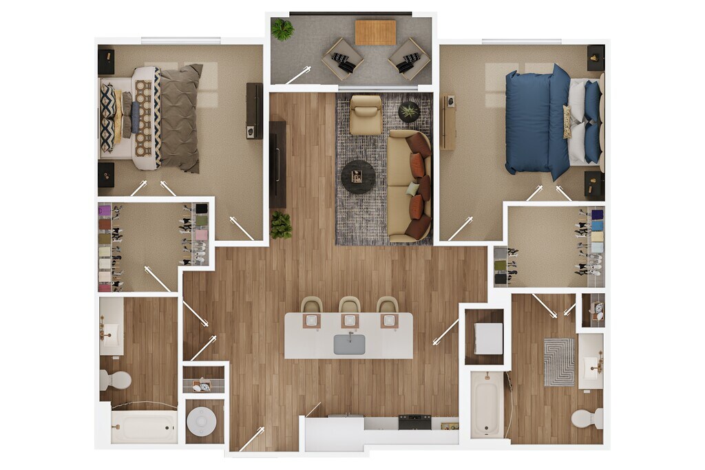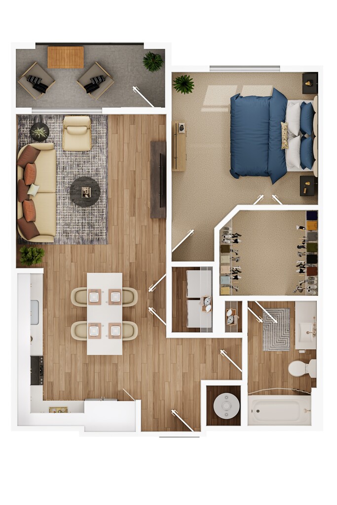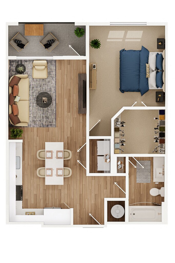 Modelo de apartamento: 1B-3$1,9351 Dormitorio, 1 Baño, 769 sq ftDisponible January 18, 2026![]()