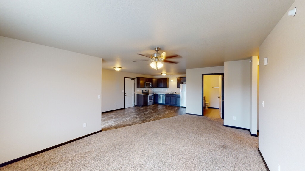 ¡Bienvenido a Champion Villas en Rapid City! Ven a casa a un plano de planta espacioso y ventajas excepcionales. En la cocina encontrarás un amplio espacio para gabinetes, un amplio refrigerador, microondas empotrado, lavaplatos, estufa eléctrica y una lavadora y secadora estándar de carga frontal. Otras características incluyen conexión para televisión por cable en todas las habitaciones, modernas puertas de 2 paneles, molduras Mocha y gabinetes pintados, y mucho espacio de estacionamiento fuera de la calle. Disfruta del área de comedor independiente que conduce a una terraza cubierta privada. Trae a tu amigo de cuatro patas, ¡aceptamos mascotas! *Rent rates and availability are subject to change. Images, 3D tours, and renderings of units may be similar to available units and do not necessarily represent the specific units available. Please contact the property for current rates and unit availability.