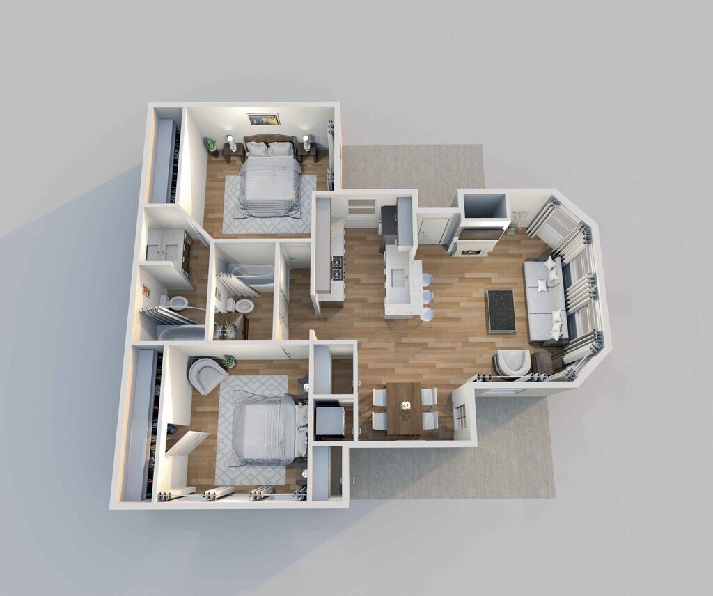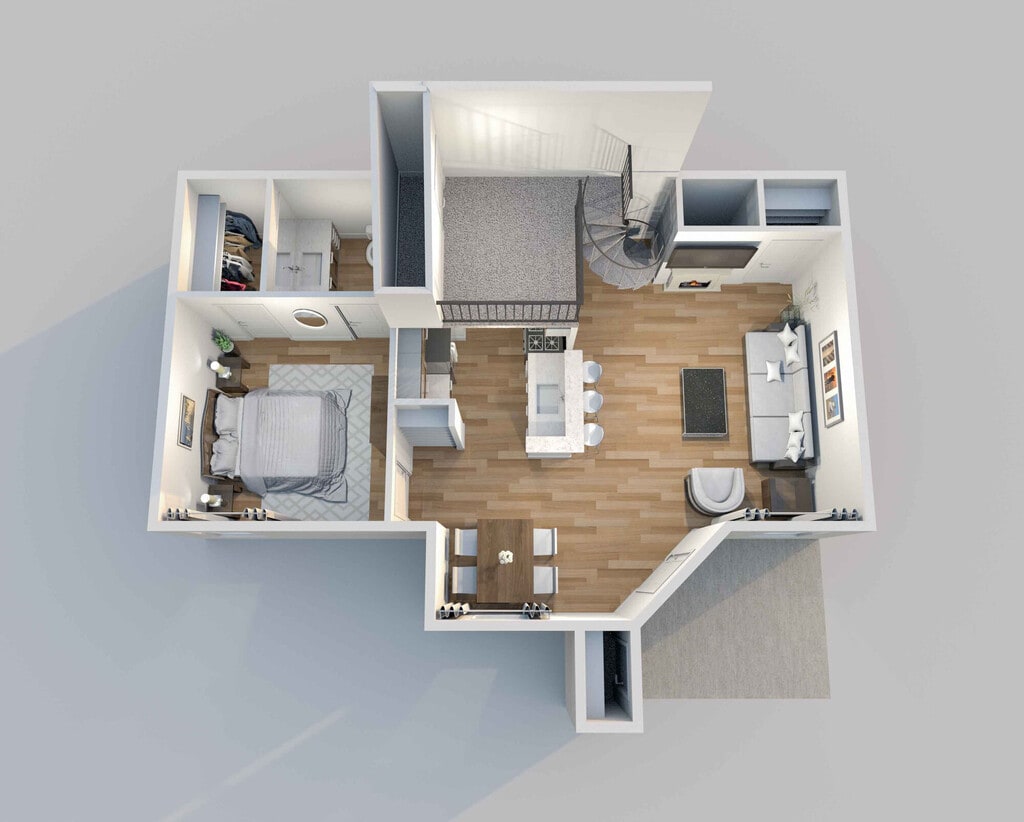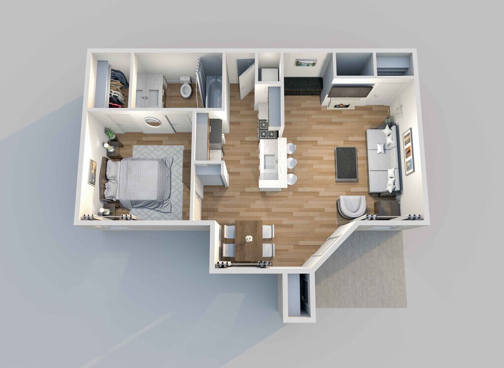 1 Dormitorio, 1 Baño, 829 pies²Disponible AhoraGalería del Modelo