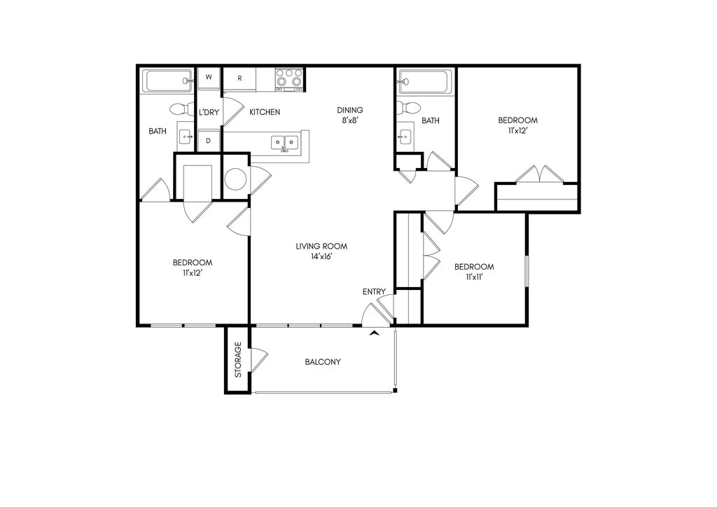 Modelo de apartamento: Two Bedroom One BathDesde $1,6022 Dormitorios, 1 Baño, 1033 sq ftDisponible Ahora![]()