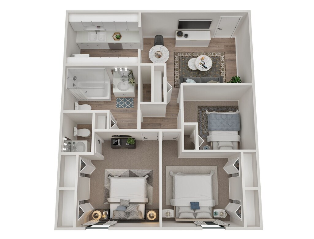 Modelo de apartamento: chan21R2 Dormitorios, 1 Baño, 945 sq ftDisponible Ahora![]()