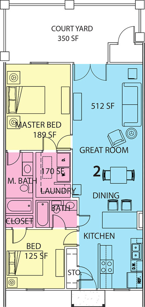 2 Dormitorios, 2 Baños, 1250 pies²Disponible AhoraGalería del Modelo