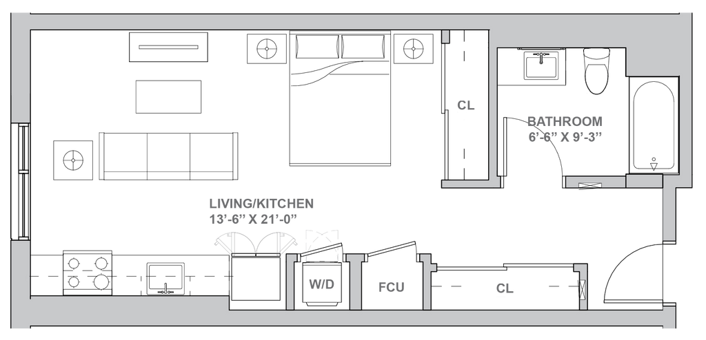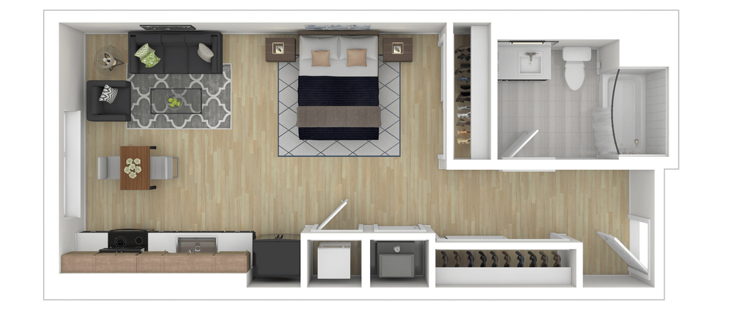 Estudio, 1 Baño, 521 pies²Disponible AhoraGalería del Modelo