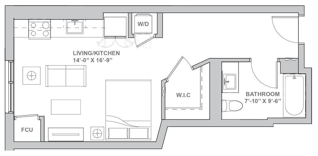 Estudio, 1 Baño, 639 pies²Disponible AhoraGalería del Modelo
