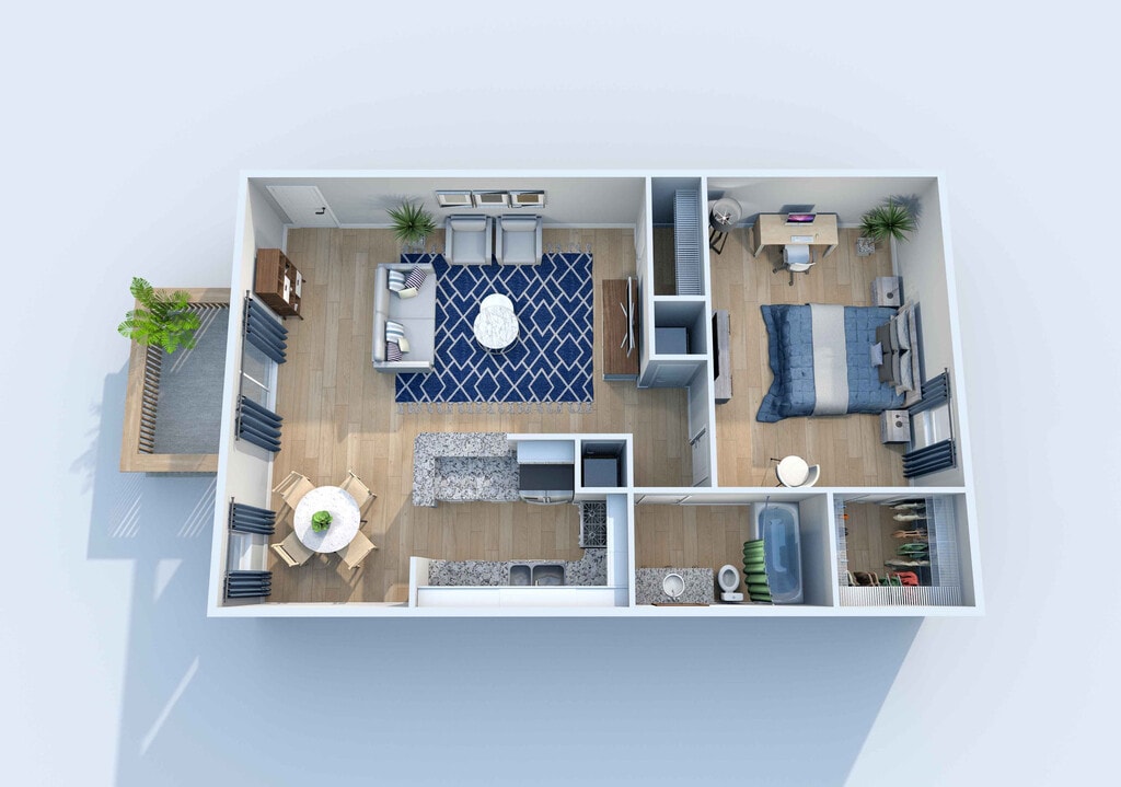 1 Dormitorio, 1 Baño, 696 pies²Disponible AhoraGalería del Modelo
