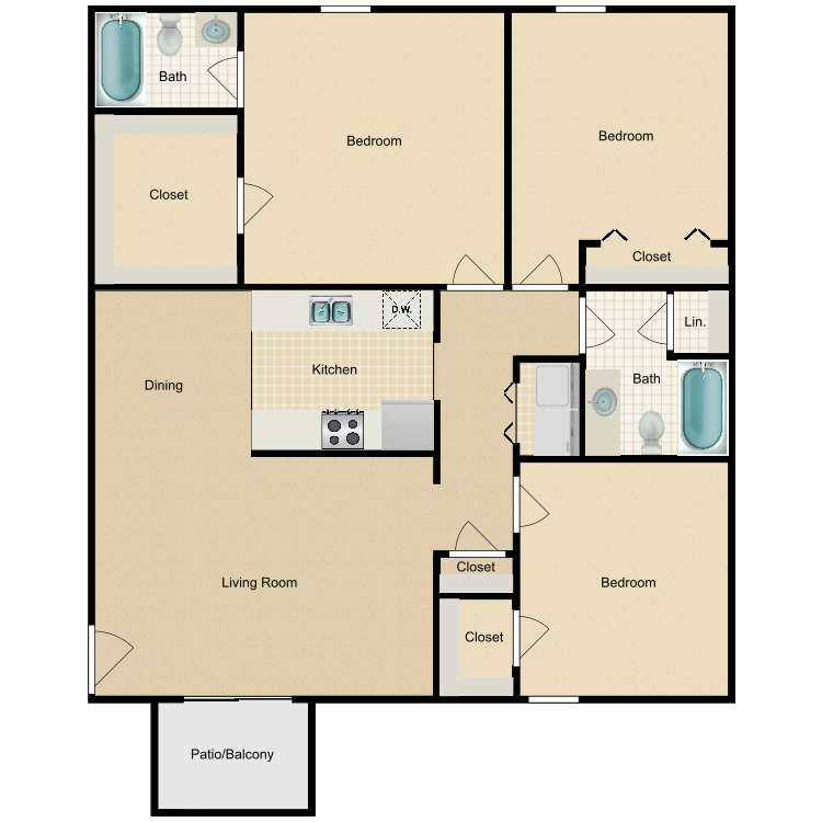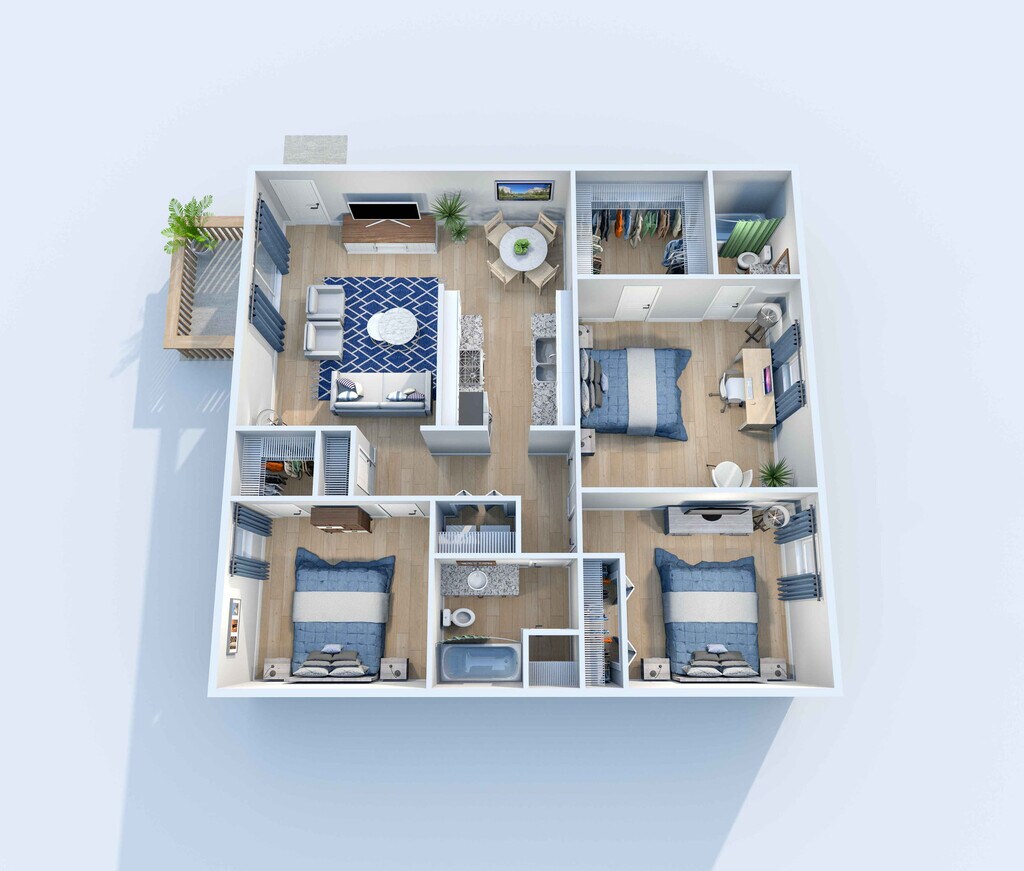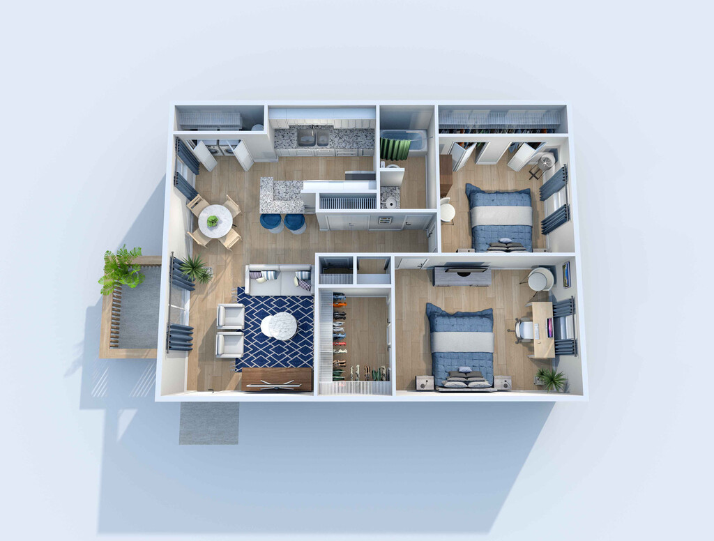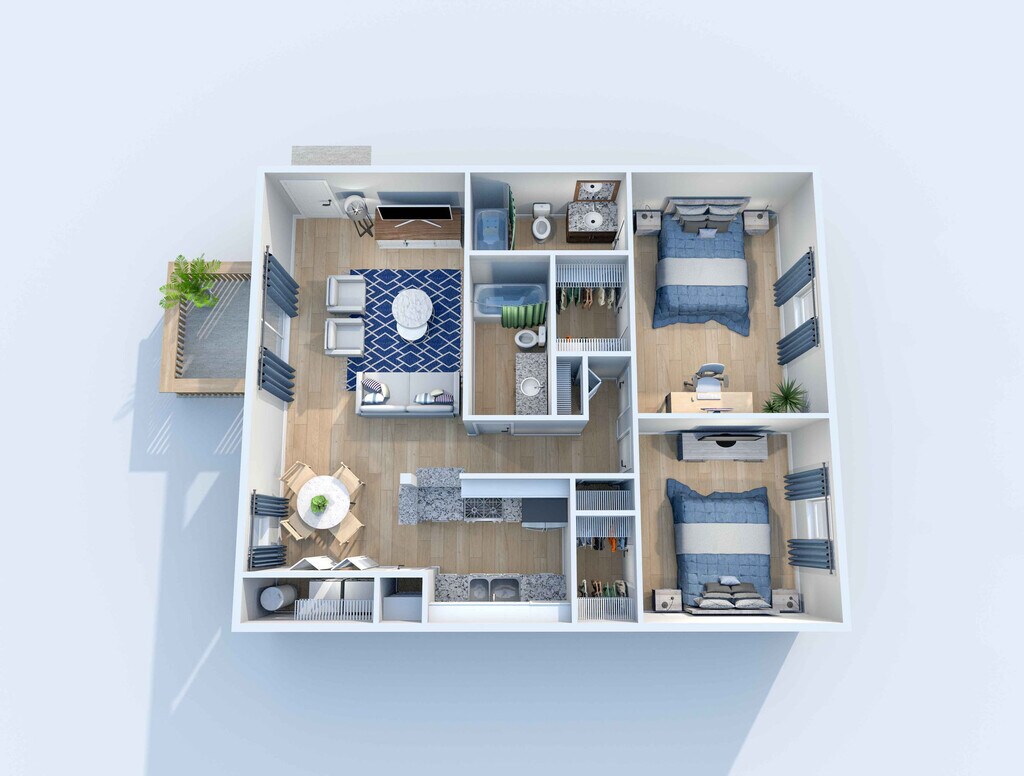 Modelo de apartamento: C13 Dormitorios, 2 Baños, 1165 sq ftDisponible Ahora![]()