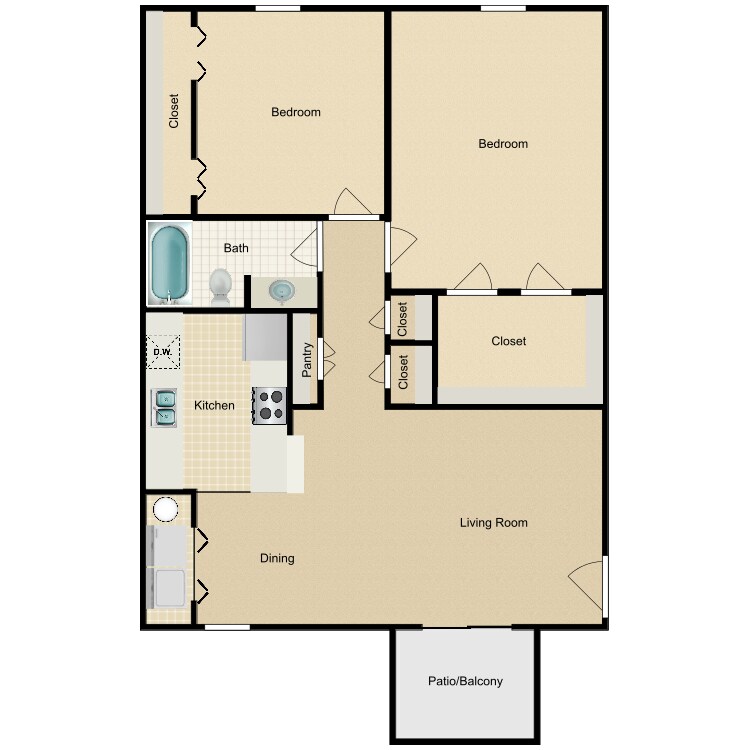 Modelo de apartamento: B12 Dormitorios, 1 Baño, 860 sq ftDisponible Ahora![]()