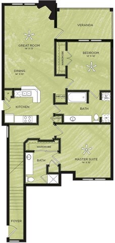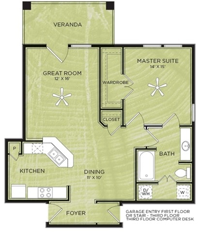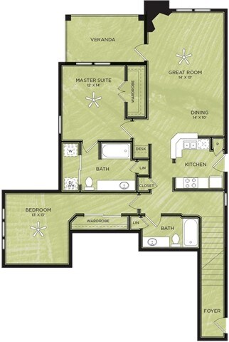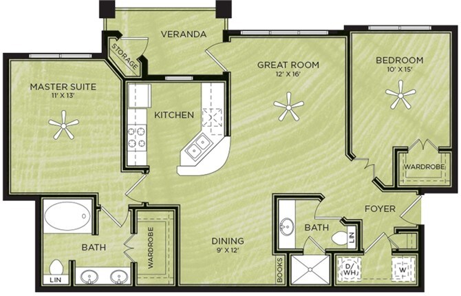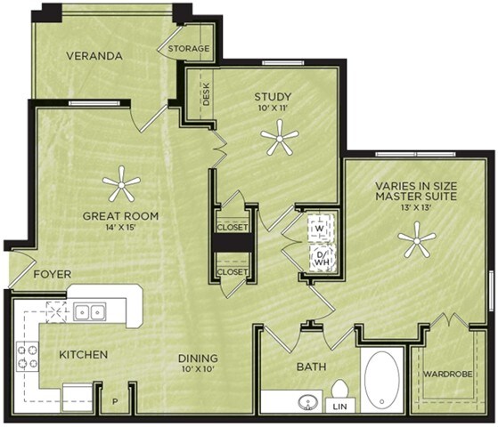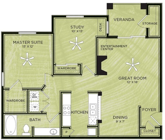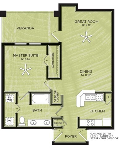 1 Dormitorio, 1 Baño, 638 pies²Disponible AhoraGalería del Modelo