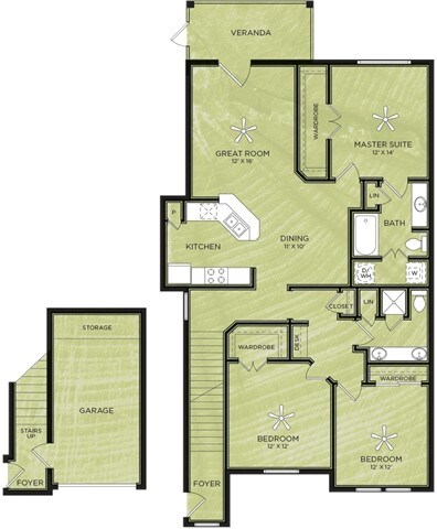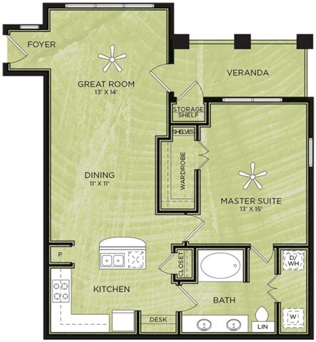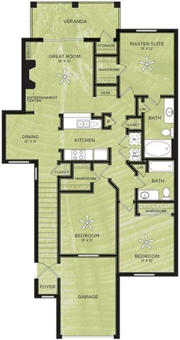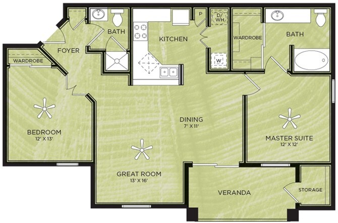 Modelo de apartamento: A3Desde $1,0971 Dormitorio, 1 Baño, 638 sq ftDisponible Ahora![]()