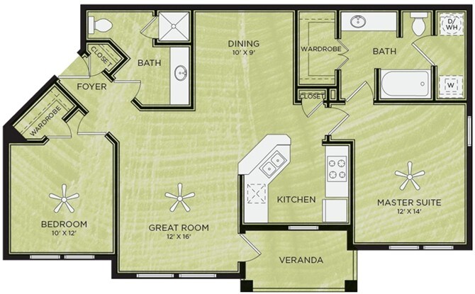 Modelo de apartamento: A4Desde $1,1421 Dormitorio, 1 Baño, 651 sq ftDisponible Ahora![]()