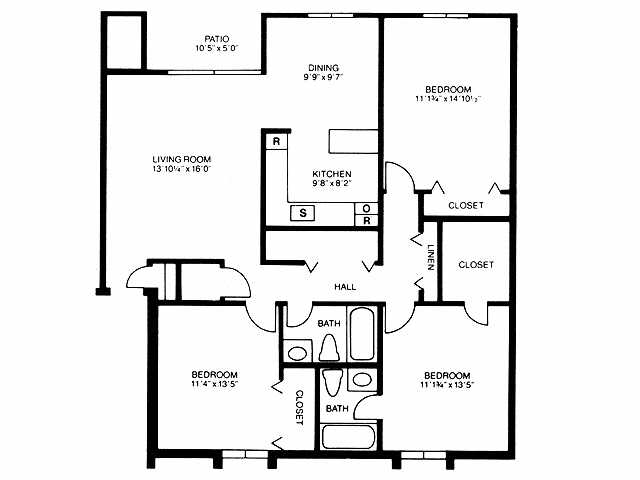 2 BD 1 BTH - Plano 11 3 Dormitorios