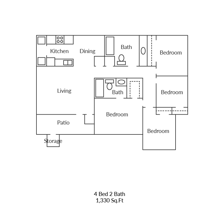 Modelo de apartamento: 4x2 Mkt$1,1304 Dormitorios, 2 Baños, 1330 sq ftDisponible Ahora![]()