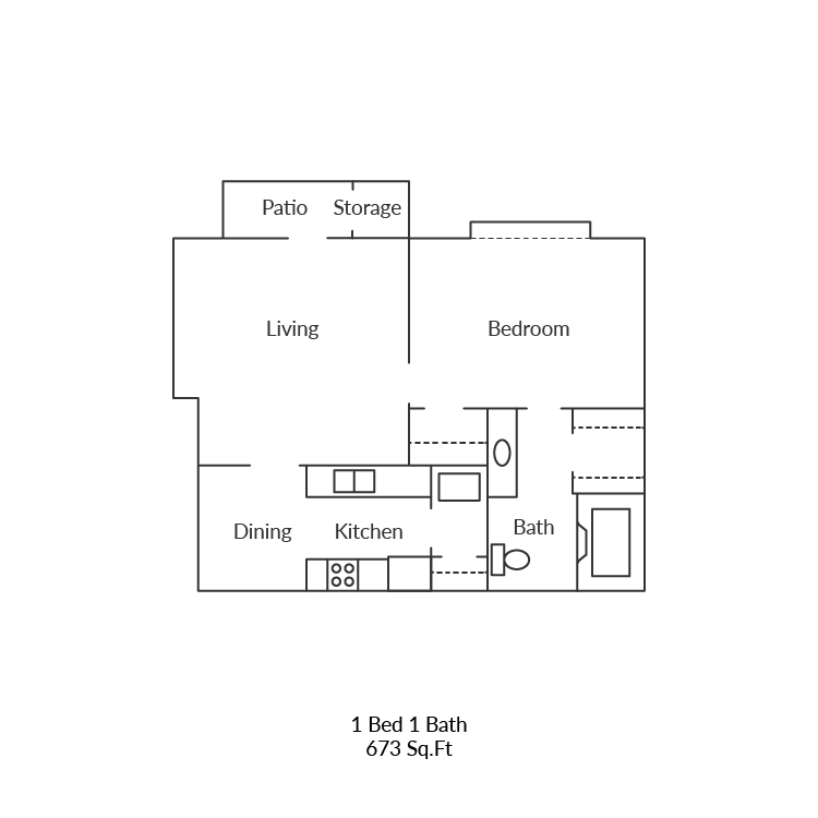 1 Dormitorio, 1 Baño, 673 pies²Galería del Modelo