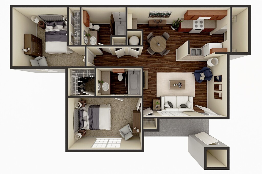 Modelo de apartamento: 2 Bedrooms$1,3002 Dormitorios, 2 Baños, 917 sq ftDisponible Ahora![]()