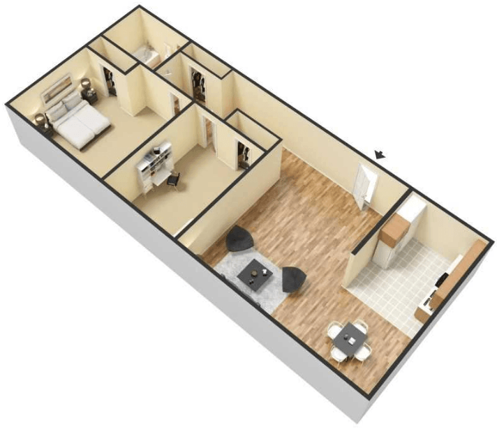 Modelo de apartamento: 2 Bed 1 BathDesde $1,6252 Dormitorios, 1 Baño, 875 sq ftDisponible Ahora![]()