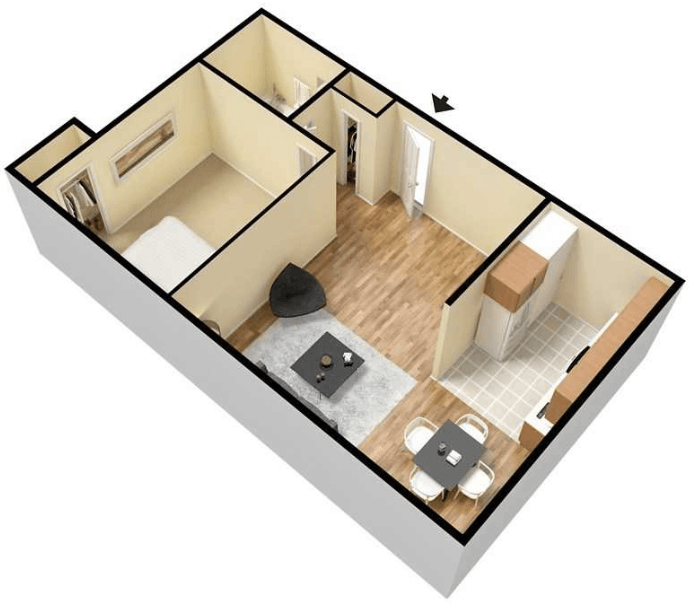 1 Dormitorio, 1 Baño, 580 pies²Disponible AhoraGalería del Modelo