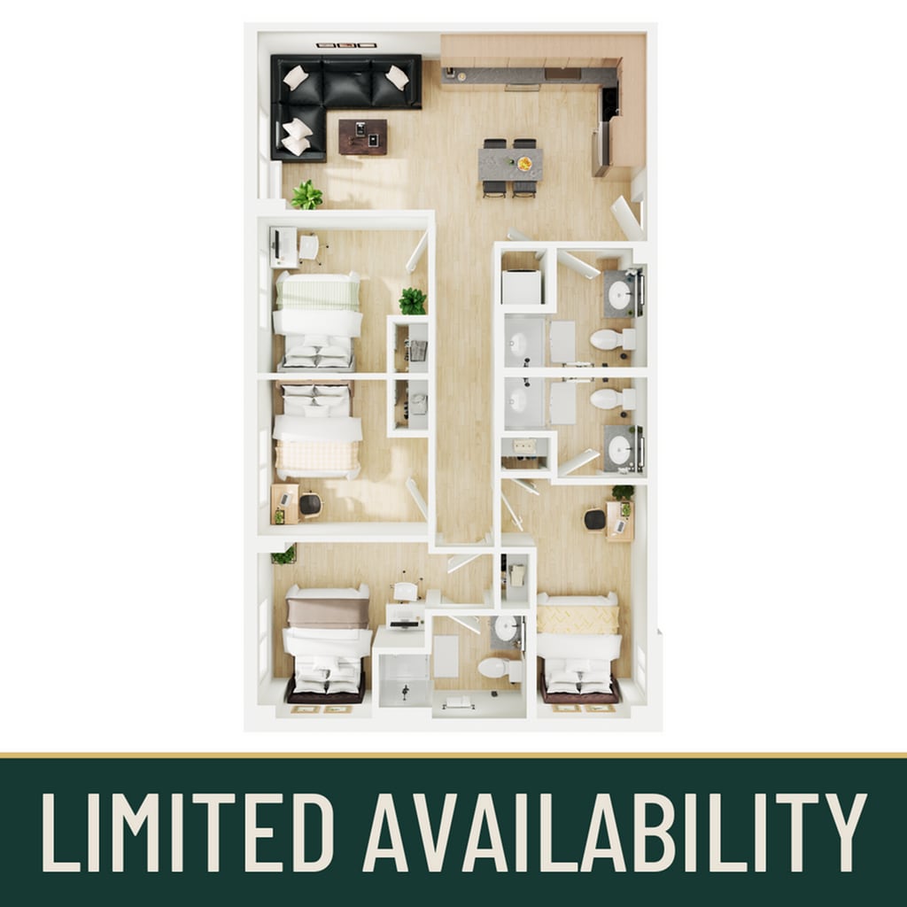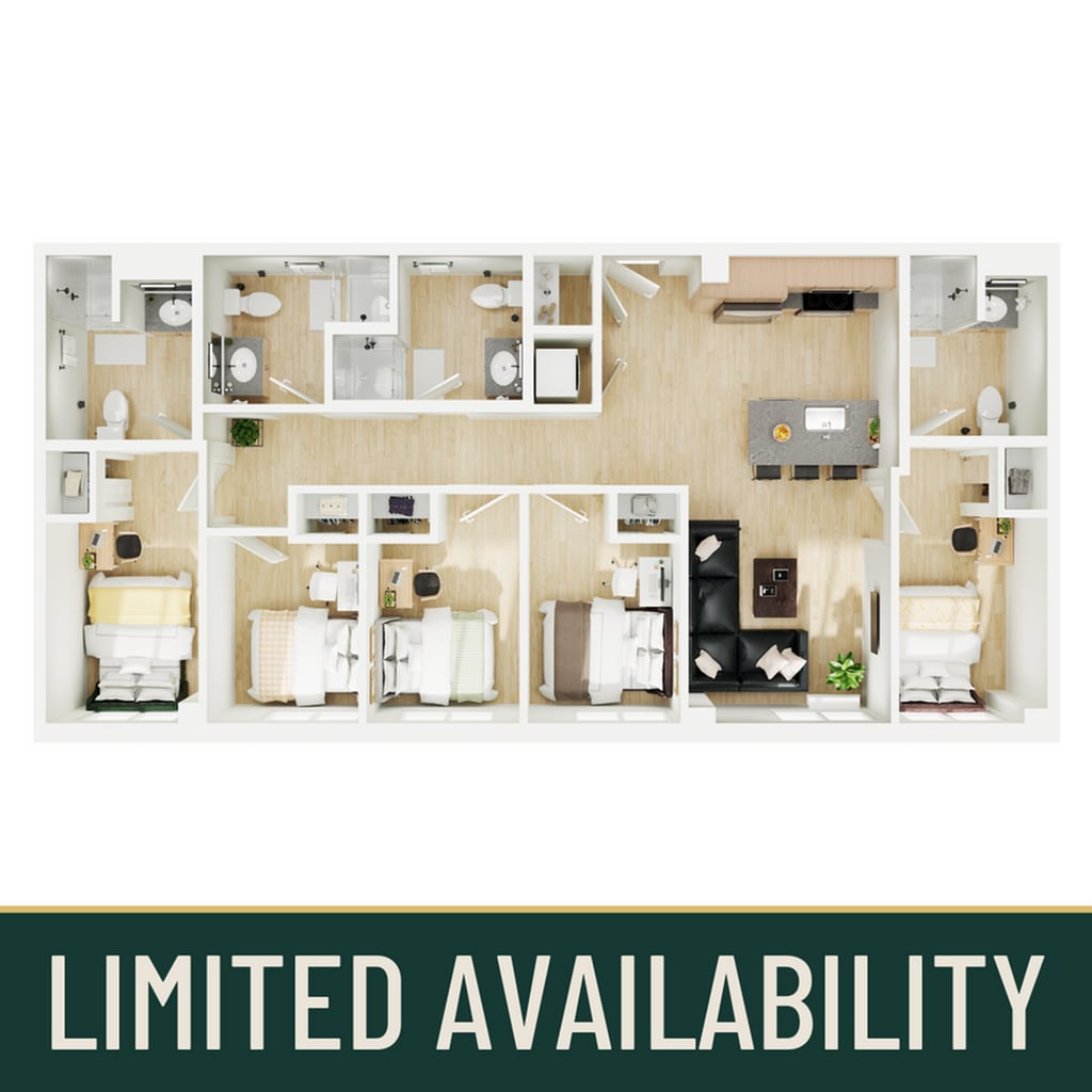 5BR/4BA - Plano 1 Unidad de apartamento: PrivateModelo de apartamento: 5BR/4BA$9995 Dormitorios, 4 Baños, 1172 sq ftDisponible September 13, 2026