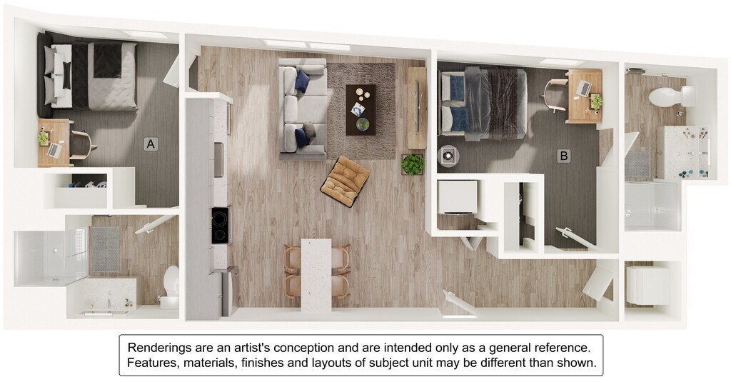 2 Dormitorios, 2 Baños, 727-728 pies²Disponible August 20, 2026Galería del Modelo