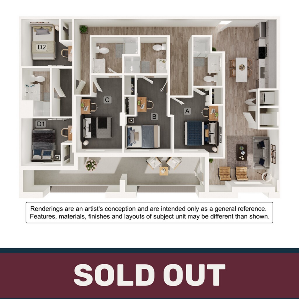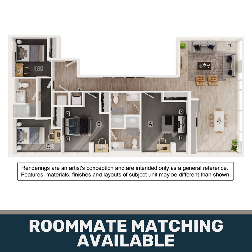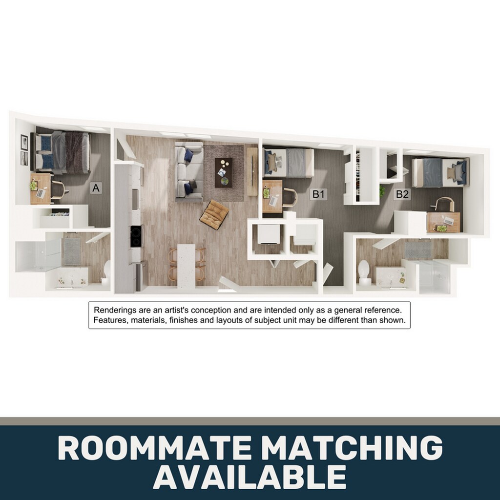 Modelo de apartamento: 1BR/1BA - A1Desde $1,4691 Dormitorio, 1 Baño, 693 sq ftDisponible August 20, 2026![]()