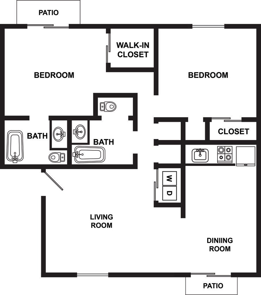Modelo de apartamento: 2 Bed 2 Bath2 Dormitorios, 2 Baños, 950 sq ftNo Disponible2 Bed 2 Bath - Plano 1 3 Dormitorios