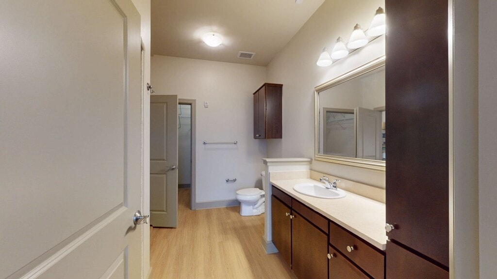 July 21, 2015My husband and I live in our 2 bedroom, 2 bathroom apartment with our dog. My 21 year old son lives with us when he is home from college. The apartment is fairly spacious. We also have a patio which gives us some extra room. The walk in closet space in each bedroom is sufficient, Thee is a lot of shelving which helps with storage. Each bathroom is big but could use more cabinet space and more lighting. We have hardwood floors in the living room and dining area which is nice. Each bedroom ...has wall to wall carpeting which is soft and easy to maintain. The kitchen area is small and could use more cabinet space. The apartment has a nice laundry room with more shelving which is helpful for storage. The washer and dryer is full size which is great. The building well maintained and is kept clean which can be hard since this is a dog-friendly building. The lobby is big with many different seating areas with TV's and a Star Bucks coffee machine which is quite an attraction. And some mornings the building provides a continental breakfast. There is a also a large kitchen area that opens up into the lobby where the building hosts different fun events, such as wine tasting, vodka tasting, wine and chees gathering, pizza party, taco night, make you own ice cream sundae. There was even a treat tasting for the dogs. The building has a gym, movie theatre room, a video game room, a meeting room, and a pool table in the lobby. There is outdoor pool with 2 gas grills available to tenants and tables for dining. There is a courtyard with 2 more gas grills and more tables for outside dining. The staff is friendly and courteous. Our dog likes it here and has made many friends with other dogs and with people. We also like it here and we have made many friends. Although we have our privacy, we can always meet people in the lobby having a cup of coffee, by the pool, sitting in courtyard, or walking the dog.Leer MásReseña de Apartments.com