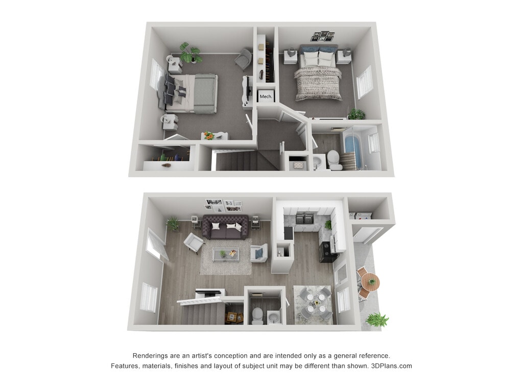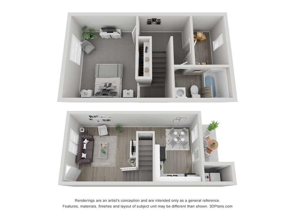 1x1 Townhouse Upgrade - Call For Availability - Imagen 1 Unidad de apartamento: 1x1x1TH-UpgradeModelo de apartamento: 1x1 Townhouse Upgrade - Call For Availability$1,2501 Dormitorio, 1 Baño, 756 sq ftDisponible Ahora2 Dormitorios