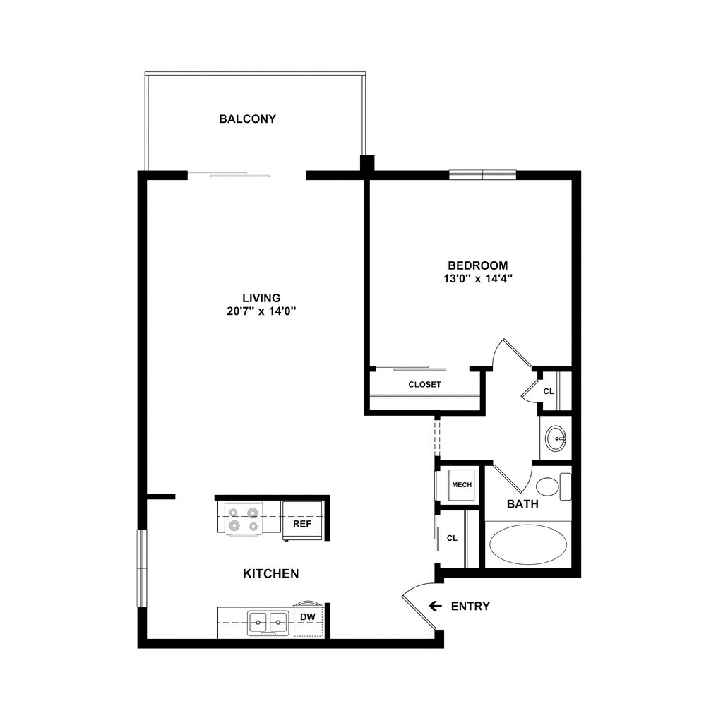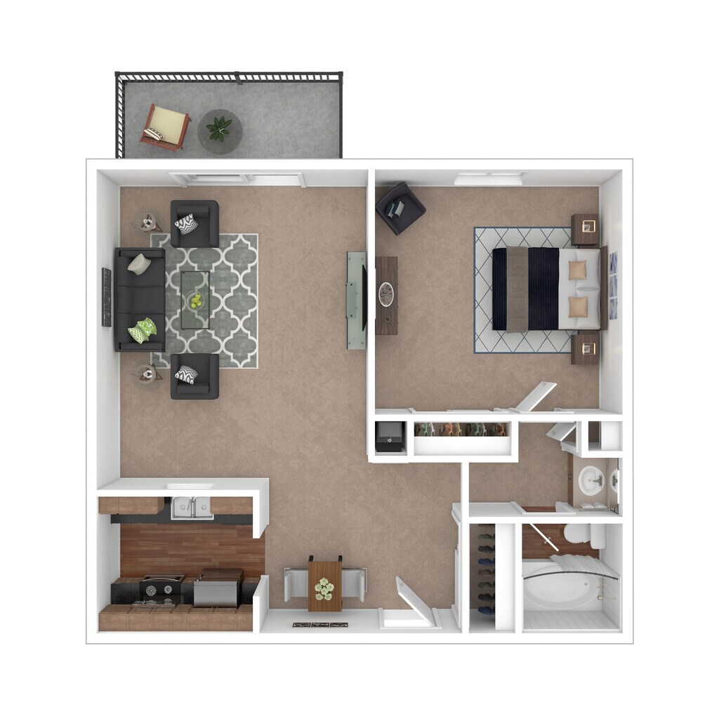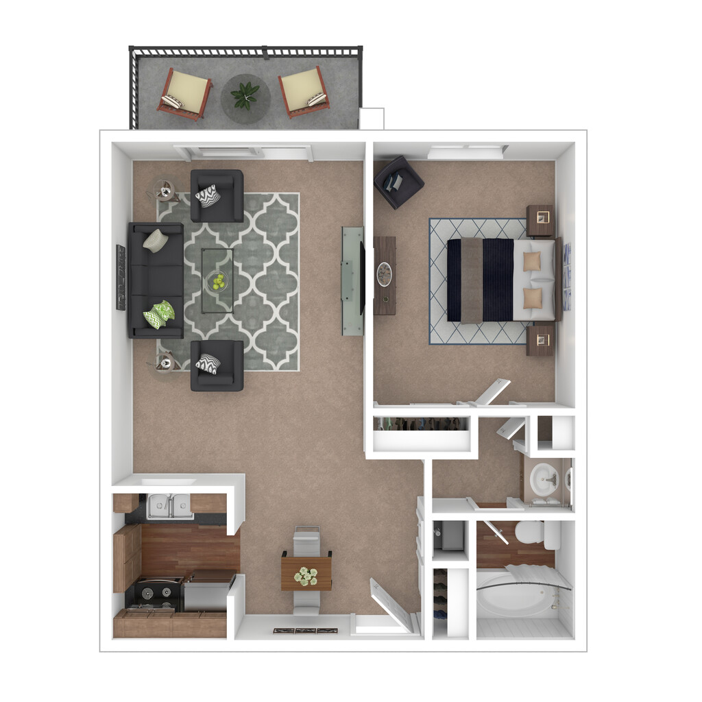 Modelo de apartamento: 1S1 Dormitorio, 1 Baño, 700 sq ftNo Disponible![]()
