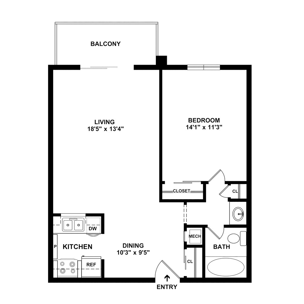 Modelo de apartamento: 1L1 Dormitorio, 1 Baño, 775 sq ftNo Disponible![]()