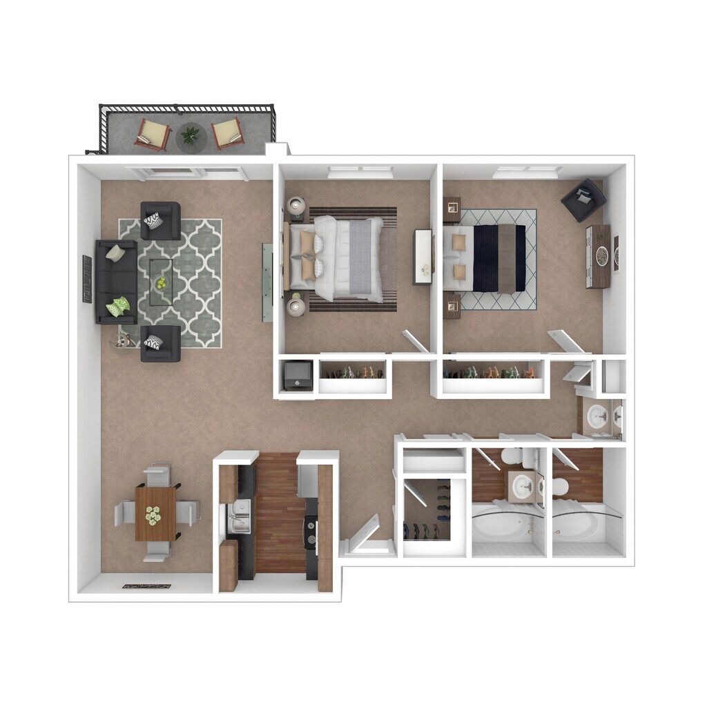 2 Dormitorios, 2 Baños, 1062 pies²El más grandeEsta opción tiene las unidades más grandes para este modeloGalería del Modelo