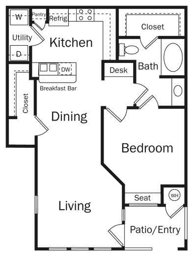 Modelo de apartamento: 1U1-FONTAINE$1,8901 Dormitorio, 1 Baño, 815 sq ftDisponible AhoraLos planos son representaciones artísticas. Todas las dimensiones son aproximadas. El producto y las especificaciones reales pueden variar en tamaño o detalle. No todas las características están disponibles en cada vivienda en alquiler. Por favor, consulta con un representante para obtener más detalles.