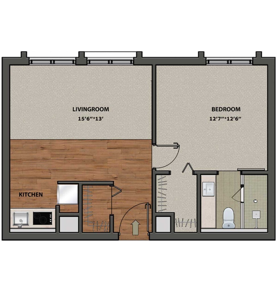 1 Dormitorio, 1 Baño, 580-700 pies²Galería del Modelo