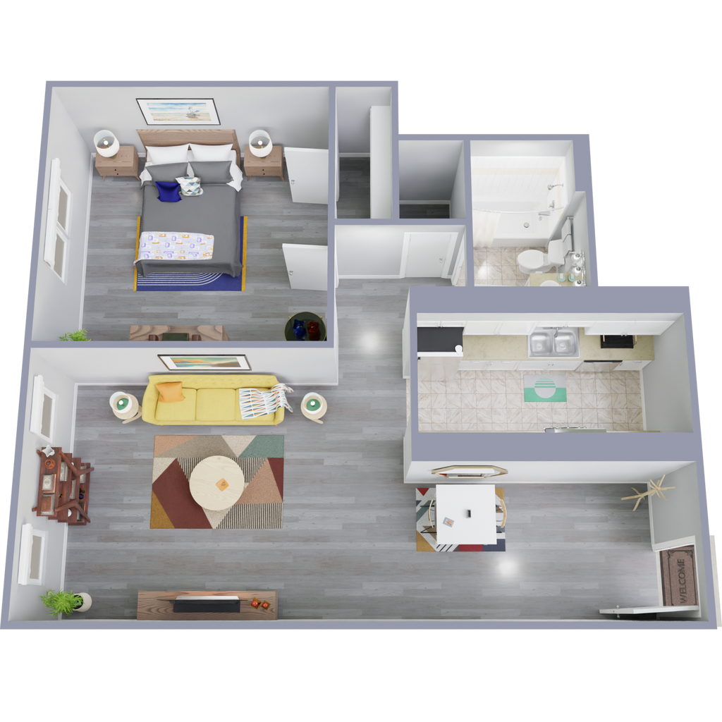 1 Dormitorio, 1 Baño, 675-800 pies²Disponible AhoraGalería del Modelo