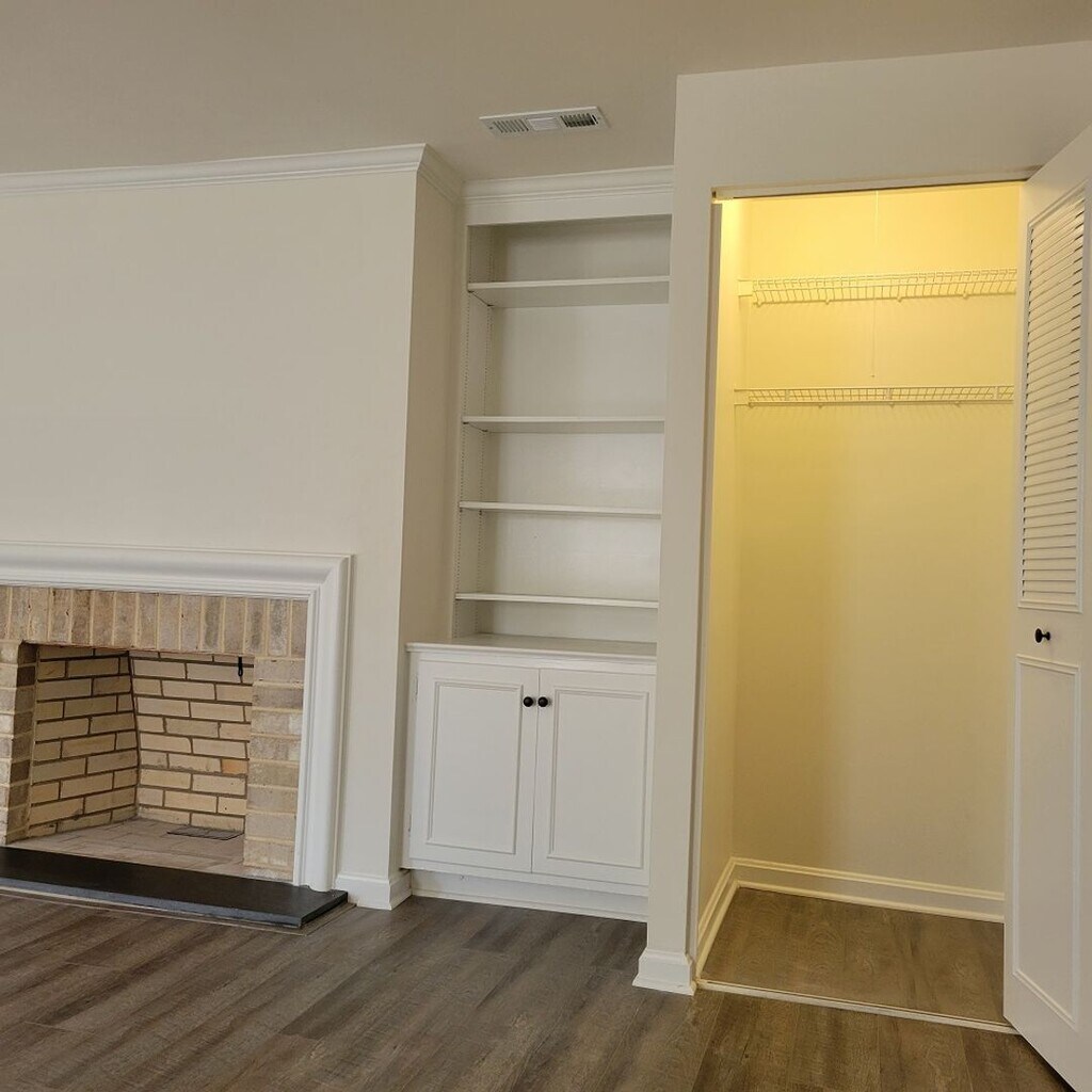 - Estanterías y armarios empotrados en el salón.