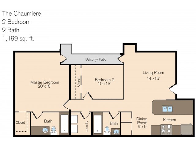 Modelo de apartamento: The Chaumiere$1,4202 Dormitorios, 2 Baños, 1199 sq ftNo DisponiblePlanosFotos![]()