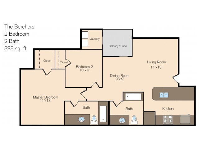 Modelo de apartamento: The BerchersDesde $1,2452 Dormitorios, 2 Baños, 898 sq ftDisponible Ahora![]()