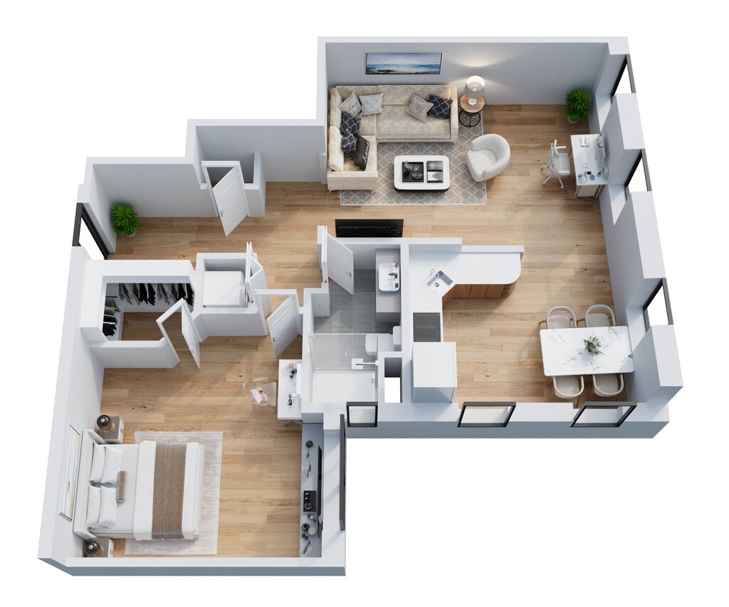 1 Dormitorio, 1 Baño, 850 pies²Disponible Dec 12Galería del Modelo