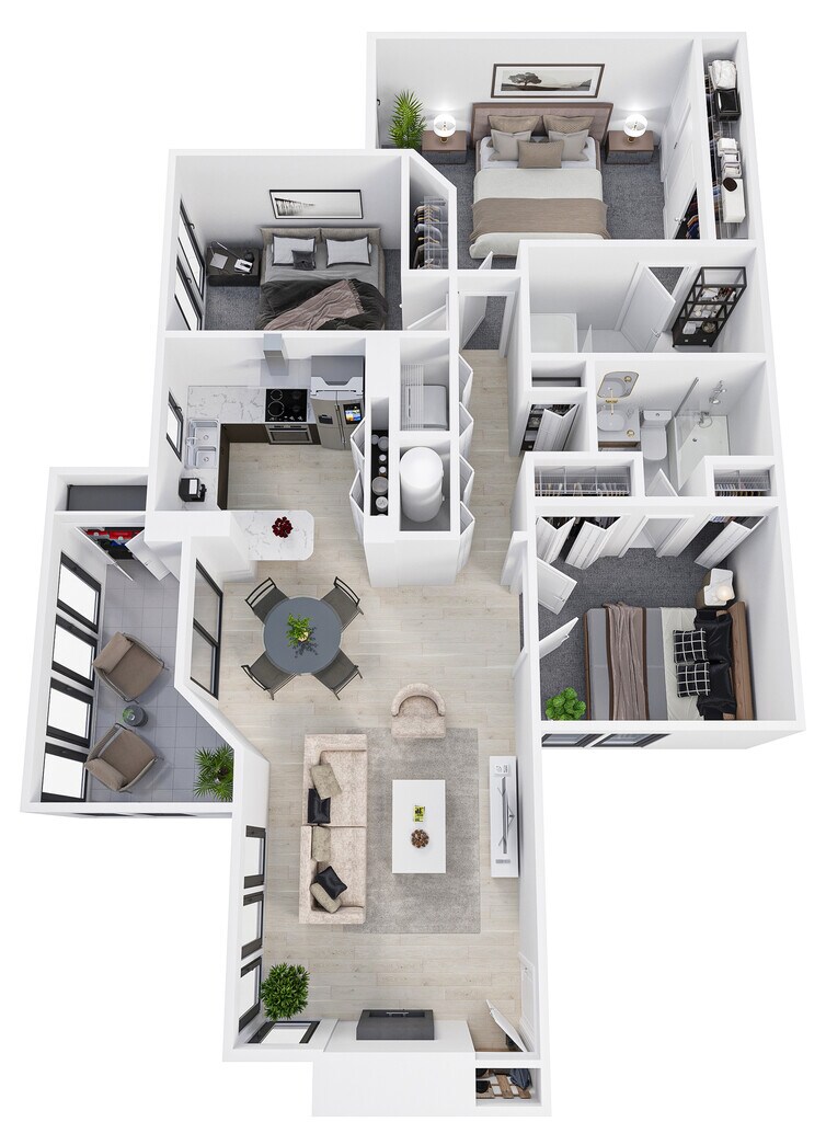 Modelo de apartamento: B3Desde $1,5052 Dormitorios, 2 Baños, 1245 sq ftDisponible November 21, 2025![]()