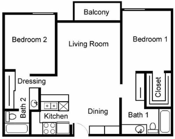 1 Dormitorio, 1 Baño, 650 pies²Disponible AhoraGalería del Modelo