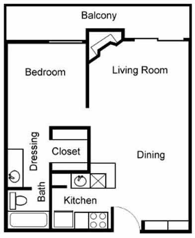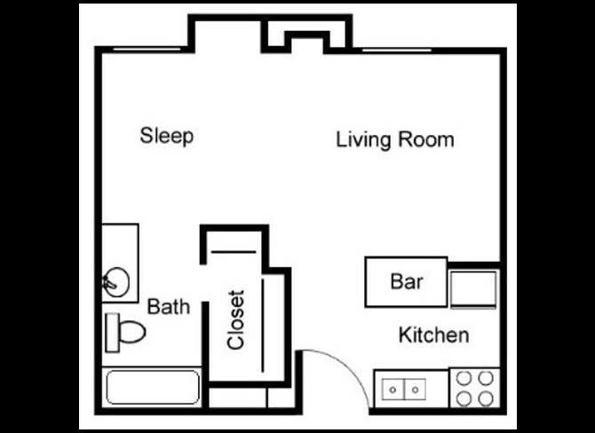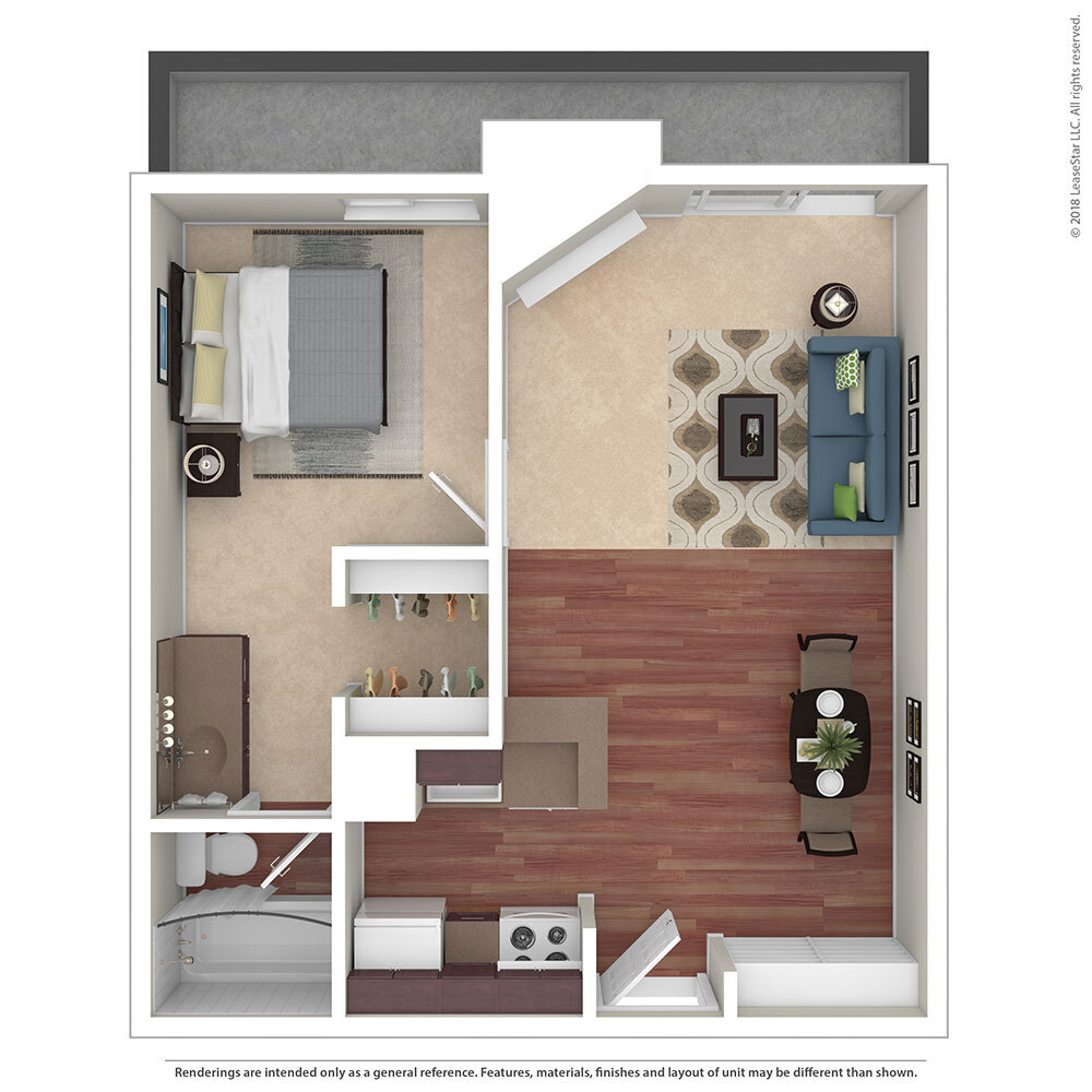 Modelo de apartamento: StudioLlame para PreciosEstudio, 1 Baño, 450 sq ftNo Disponible![]()