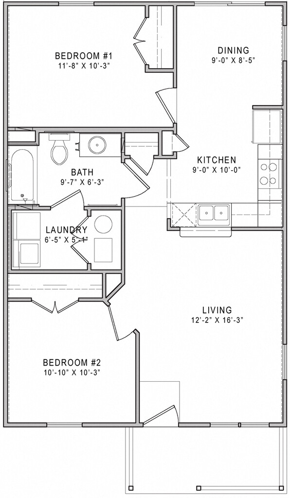 Modelo de apartamento: Two Bedroom2 Dormitorios, 1 Baño, 864 sq ftDisponible Ahora![]() - Two Bedroom - Plano 1