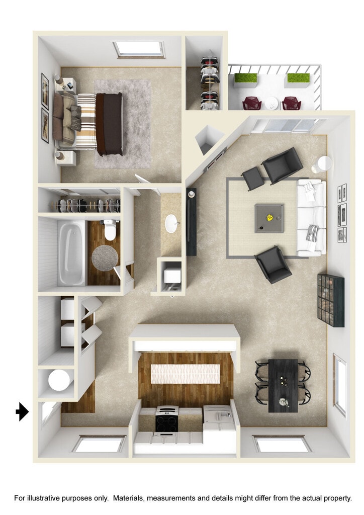 1 Dormitorio, 1 Baño, 770 pies²Disponible AhoraGalería del Modelo