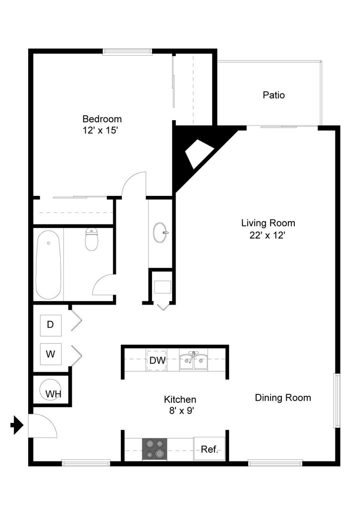 Modelo de apartamento: A5$1,0631 Dormitorio, 1 Baño, 488 sq ftNo DisponibleLos planos de la planta son una interpretación artística. Todas las dimensiones son aproximadas. Los tamaños o el detalle del producto real y sus especificaciones pueden variar. No todas las características están disponibles en todos los hogares para rentar. Los precios y la disponibilidad están sujetos a cambios. El alquiler que se muestra es mensual. Se pueden aplicar ciertos cargos, por ejemplo, entrega de paquetes, recolección de basura, agua, servicios, etc. Depositos varian. Consulta a un representante para conocer detalles.