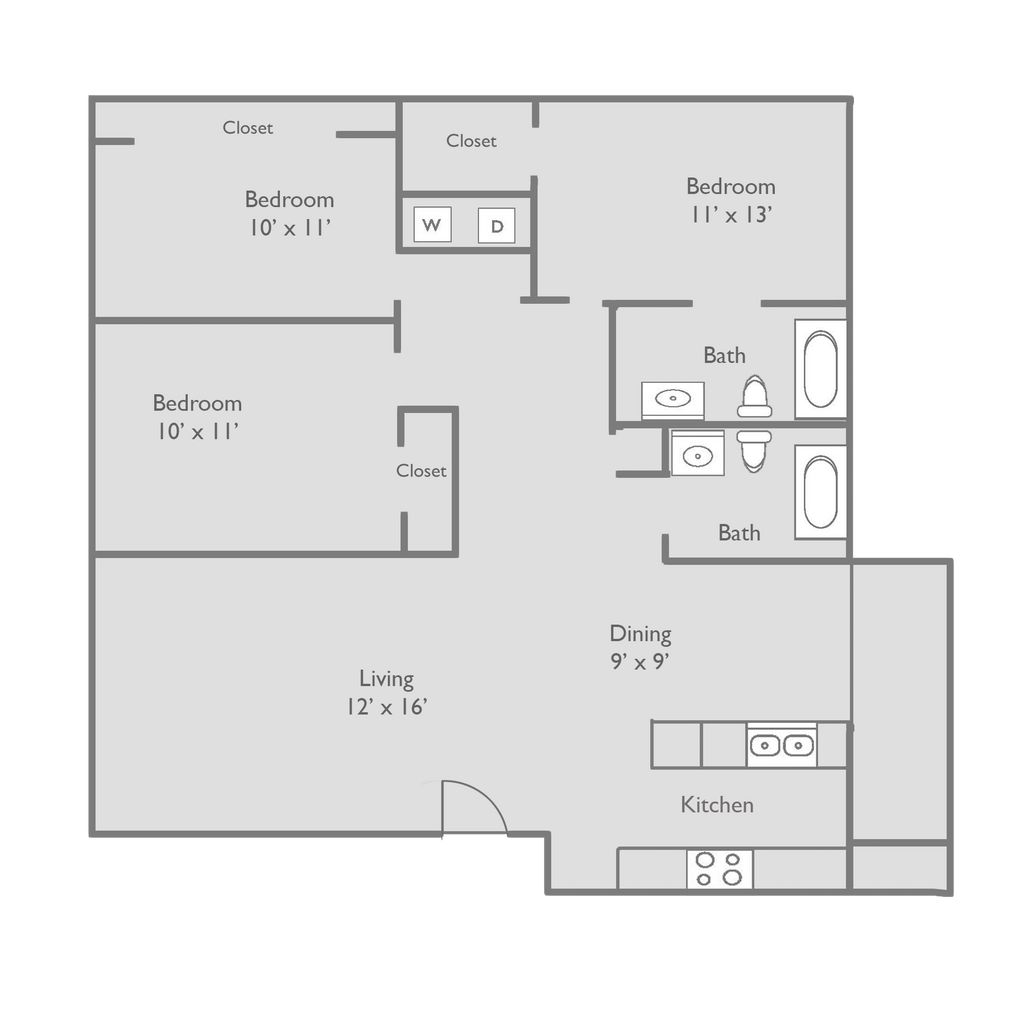 3 Dormitorios, 2 Baños, 1061 pies²Precio Mensual TotalDisponible AhoraGalería del Modelo